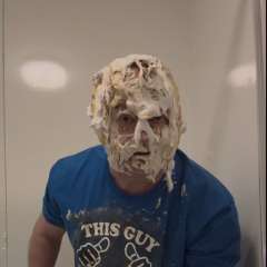 GARYWAM had a sloppy pie dumped all over his head by bsmessybakery