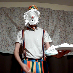 Michiganpie had a giant chocolate cake smooshed in his face by SeymourTheClown
